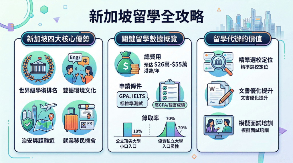 近年來,新加坡憑藉其頂尖的教育質量、安全的社會環境以及與香港相近的文化背景,成為眾多香港學生與家長的升學首選。無論是高中畢業升讀大學,還是職場人士計劃進修新加坡留學碩士,競爭都日益激烈。